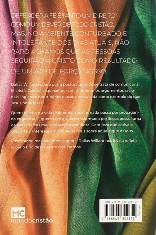 Defender a Fé é tanto um direito como um dever de todo cristão. Mas, no ambiente conturbado e intolerante dos dias atuais, não raro achamos que as pessoas seguirão a Cristo como resultado de um ato de força nosso. Dallas Willard sugere outra postura quando se trata de comunicar a fé cristã. Que tal esquecer por um momento os argumentos racionais, lógicos e doutrinários e usar a nossa vida como exemplo do que Jesus pode fazer? Quem não teve a vida realmente transformada passa por propaganda enganosa. E quem teve a vida transformada por Jesus possui uma de suas marcas mais notáveis: a gentileza. Gentileza que cativa e desperta o interesse em conhecer mais sobre aquele que é Deus. Provocador, mas não menos gentil, Dallas Willard nos leva a refletir sobre o tipo de Deus em que cremos.